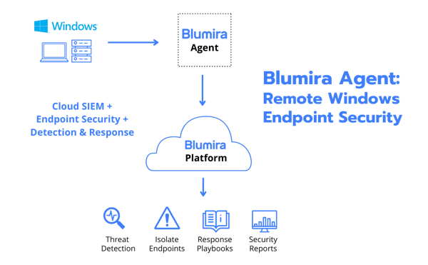 Detect threats 5X faster and support remote Windows, MAC, and Linus endpoints with Blumira Agent.